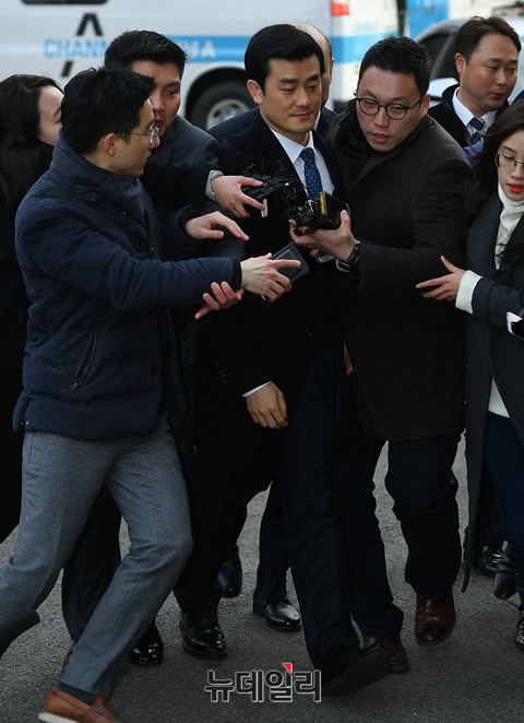 이영선 청와대 제2부속실 행정관이 12일 오전 서울 종로구 헌법재판소에서 열린 박근혜 대통령 탄핵심판 4차 변론기일에 증인으로 출석하며 취재진의 질문을 받고 있다.