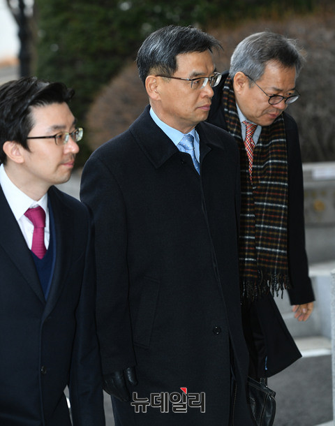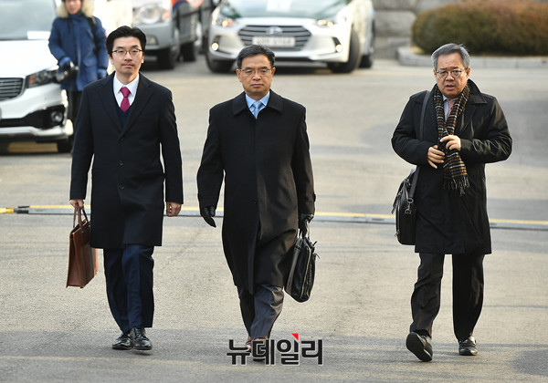 박근혜 대통령 변호인단인 채명성, 이중환 변호사가 12일 오전 서울 종로구 헌법재판소 대심판정에서 열린 박근혜 대통령 탄핵심판 4차 변론기일에 참석하고 있다.