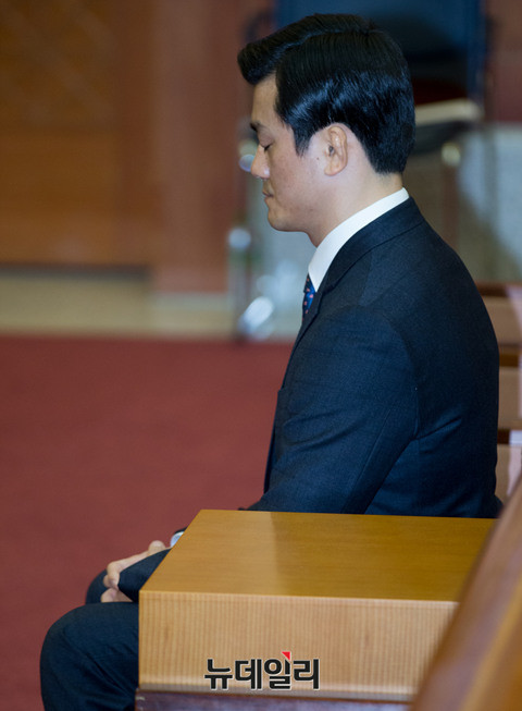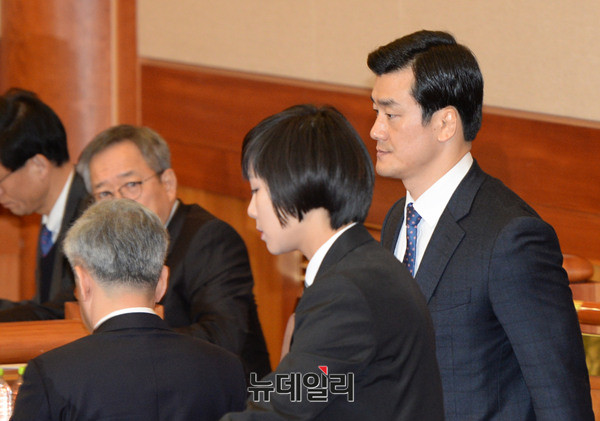이영선 청와대 행정관이 12일 오전 서울 종로구 헌법재판소 대심판정에서 열린 박근혜 대통령 탄핵심판 4차 변론기일에 증인으로 입장하고 있다. (사진=사진공동취재단)