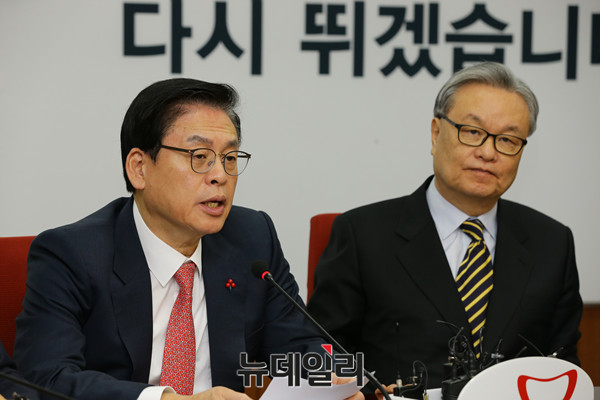 정우택 새누리당 원내대표가 12일 오전 서울 여의도 새누리당 당사에서 열린 비상대책위원 및 주요당직자회의에서 발언을 하고 있다.