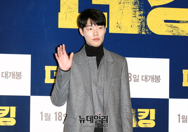 배우 류준열이 12일 오후 서울 광진구 롯데시네마 건대입구점에서 열린 영화 '더 킹(감독 한재림)' 언론시사회에 참석해 포토타임을 갖고 있다.