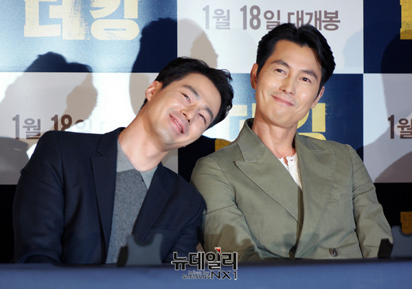 배우 조인성과 정우성이 12일 오후 서울 광진구 롯데시네마 건대입구점에서 열린 영화 '더 킹(감독 한재림)' 언론시사회에 참석했다.
