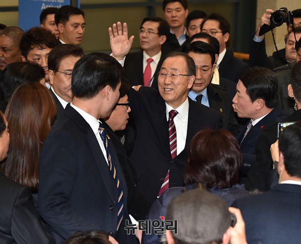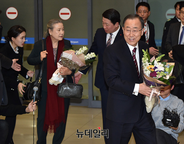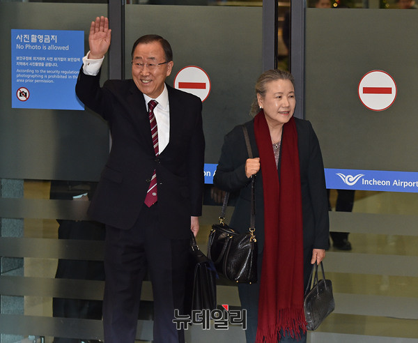 • 반기문 전 유엔사무총장이 부인 유순택 여사와 함께 12일 오후 인천국제공항을 통해 입국했다. 반 전 사무총장은 11일(현지시간) 오후 1시 미국 뉴욕 JFK 공항을 출발해 인천공항에 오후 5시 30분께 도착했다.