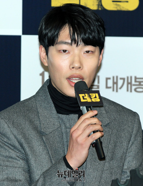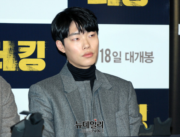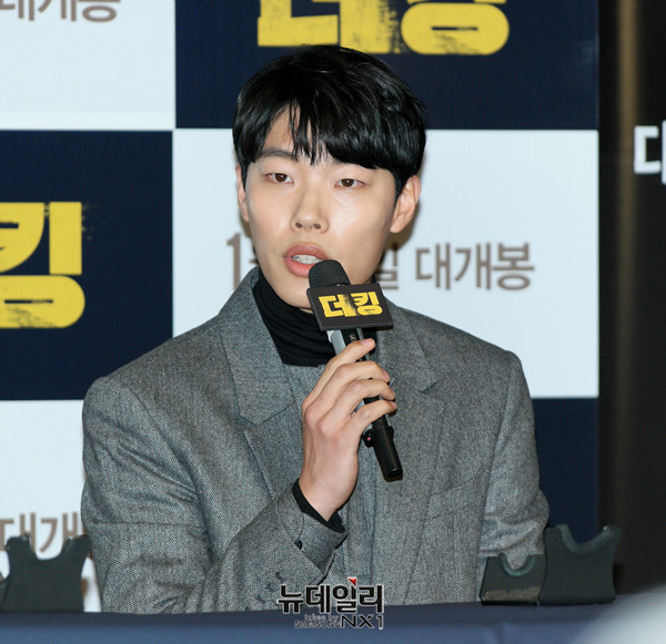 배우 류준열이 12일 오후 서울 광진구 롯데시네마 건대입구점에서 열린 영화 '더 킹(감독 한재림)' 언론시사회에 참석해 인사말을 전하고 있다.