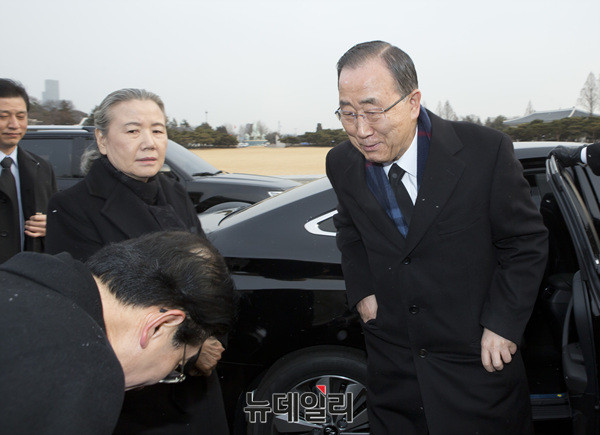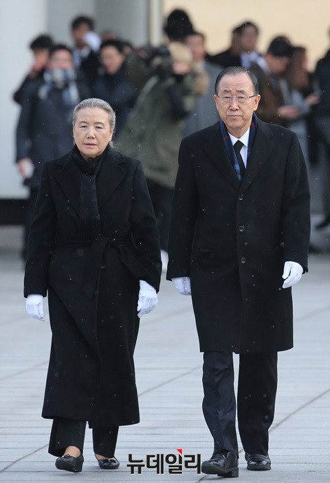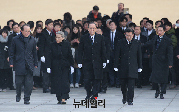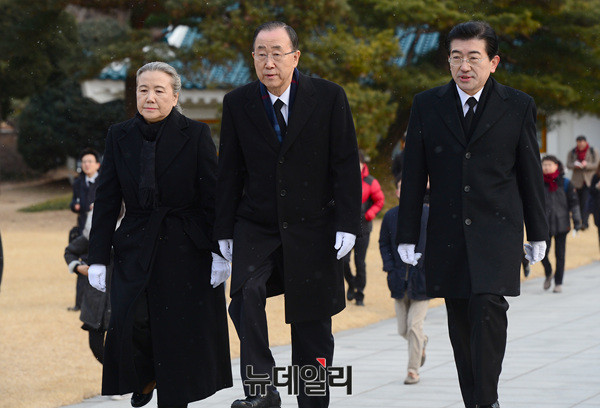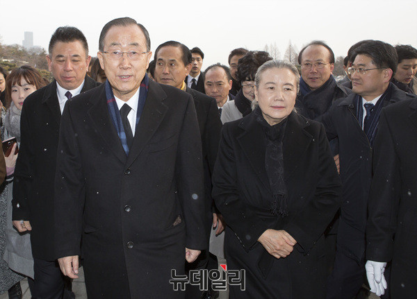반기문 전 유엔사무총장이 13일 오전 서울 국립현충원 현충탑에 입장하고 있다.이날 참배는 반 전 사무총장이 입국 후 가진 첫 공식 일정이다. 앞서 반 전 사무총장은 12일 오후 인천국제공항을 통해 입국했다.(사진=공동취재단)