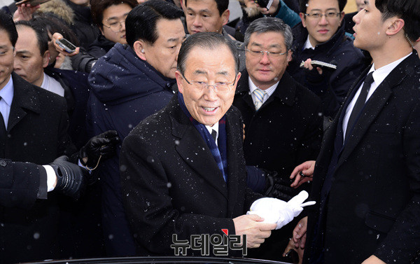 반기문 전 유엔사무총장이 13일 오전 서울 국립현충원을 방문해 학도의용군 무명용사탑을 참배하고 있다. 이날 참배는 반 전 사무총장이 입국 후 갖은 첫 공식 일정이다. 반 전 사무총장은 지난 12일 오후 인천국제공항을 통해 입국했다.(사진=공동취재단)