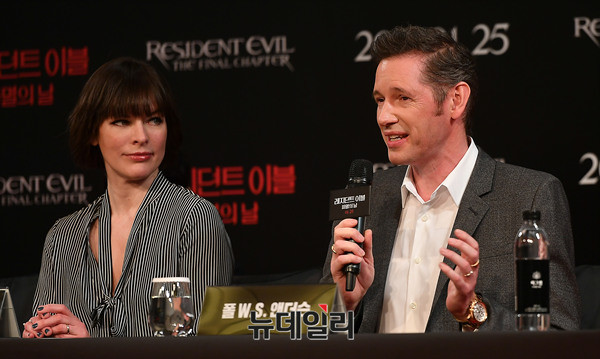 폴 앤더슨 감독이 13일 오전 서울 종로구 포시즌호텔서울에서 열린 영화 '레지던트이블-파멸의날' 기자간담회에서 질문에 답하고 있다. 이날 기자간담회에는 연출을 맡은 '폴 앤더슨' 감독과 배우 '밀라 요보비치', 특별출연한 이준기가 참석했다. 오는 25일 개봉 예정.