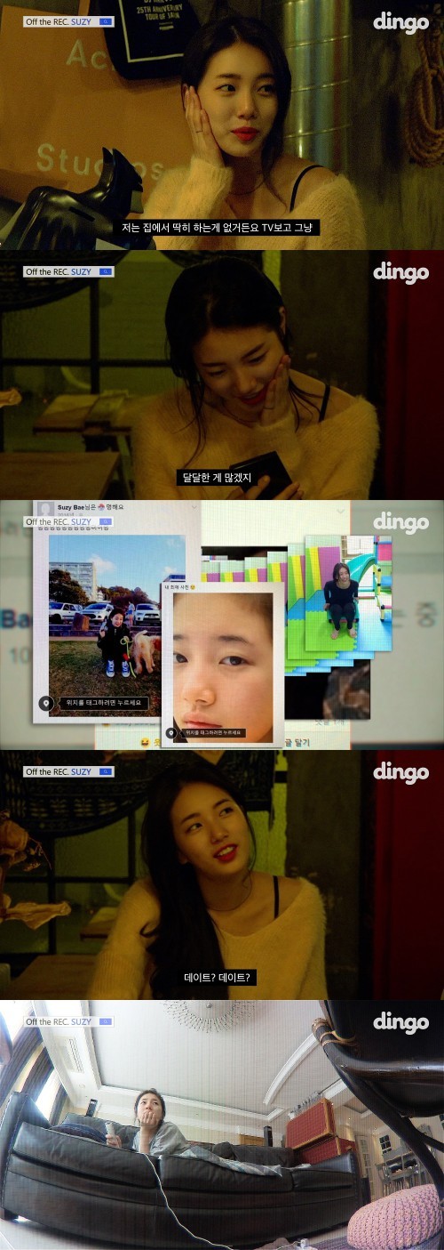15일 낮 12시 수지의 날 것 그대로의 일상을 담은 리얼리티 프로그램 '오프더레코드, 수지(OFF THE REC. SUZY)' 1회가 네이버TV, 페이스북, 유튜브의 딩고뮤직 채널 및 네이버 V LIVE 수지 채널을 통해 공개됐다.