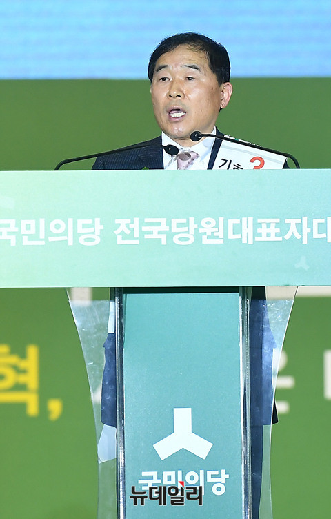 황주홍 국민의당 당대표 및 최고위원 후보가 15일 오후 경기 고양시 일산서구 킨텍스 제1전시장 3홀에서 당대표 및 최고위원, 전국여성위원장, 전국청년위원장을 선출하는 전국당원대표자대회에서 연설을 하고 있다.
