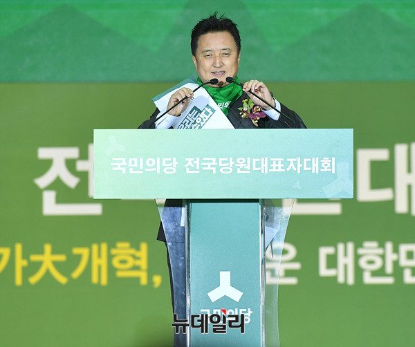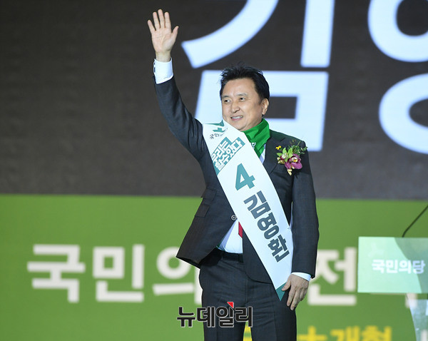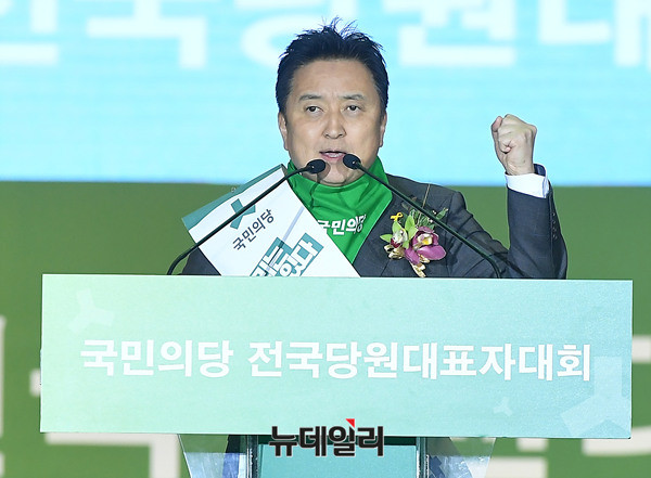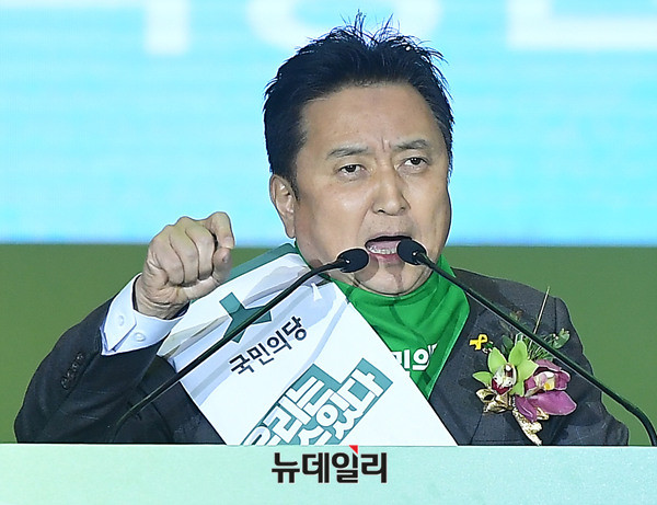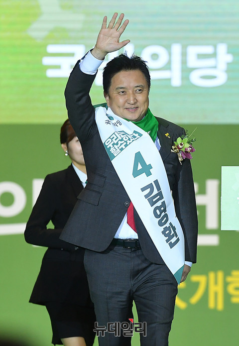 김영환 국민의당 당대표 및 최고위원 후보가 15일 오후 경기 고양시 일산서구 킨텍스 제1전시장 3홀에서 당대표 및 최고위원, 전국여성위원장, 전국청년위원장을 선출하는 전국당원대표자대회에서 연설을 하고 있다.