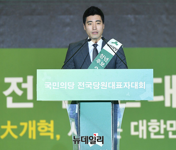 김지환 후보가 15일 오후 경기 고양시 일산서구 킨텍스 제1전시장 3홀에서 열린 전국당원대표자대회에서 신임 전국청년위원장에 선출됐다.