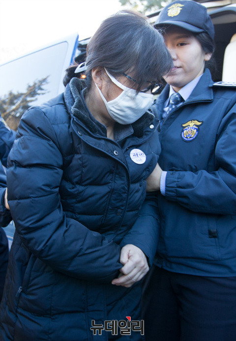 비선실세 의혹을 받고 있는 최순실 씨가 16일 오전 서울 종로구 헌법재판소 대심판정에서 열린 '박근혜대통령 탄핵심판사건 5차변론'에 증인으로 출석하고 있다.