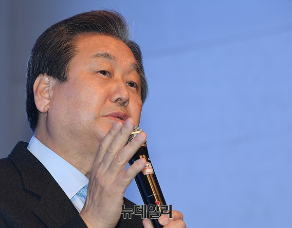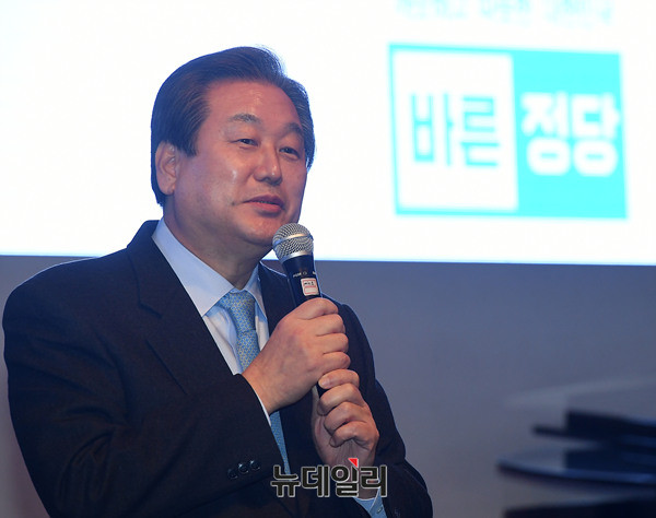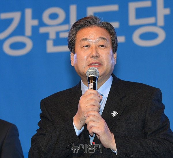 김무성 바른정당 의원이 16일 오후 강원 원주시 아모르컨벤션에서 열린 바른정당 강원도당 창당대회에서 인사말을 하고 있다. 권성동, 황영철 의원은 이날 창당대회에서 강원도당 공동위원장으로 선출됐다.