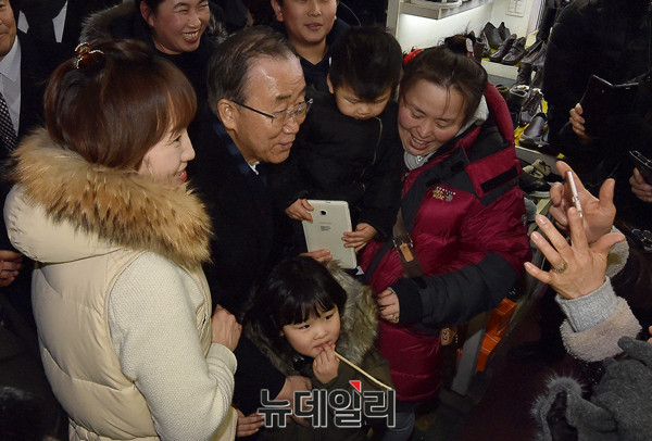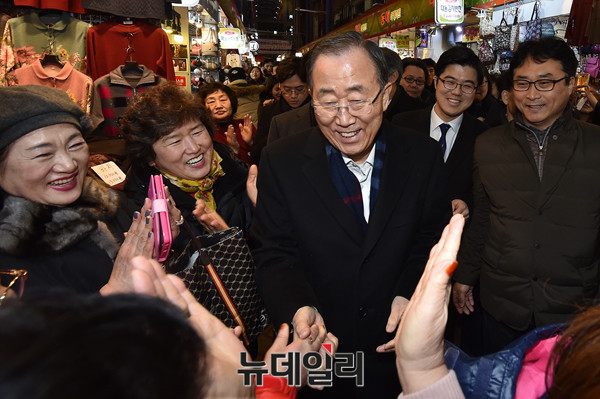 반기문 전 유엔 사무총장이 16일 오후 부산 중구 부평 깡통시장을 방문해 시민들과 인사를 나누고 있다.