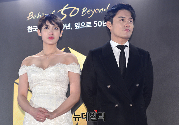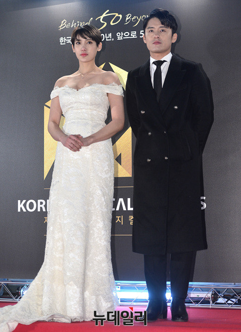 배우 홍서영, 최재웅이 16일 오후 서울 용산구 블루스퀘어에서 열린 '제1회 한국뮤지컬어워즈(KOREA MUSICAL AWARDS)'에 참석해 포토타임을 갖고 있다.