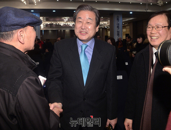 바른정당 김무성 의원이 17일 오후 전라북도 전주시 오펠리스 웨딩홀에서 '바른정당 전북도당 창당대회'에 참석해 지지자와 악수를 나누고 있다.