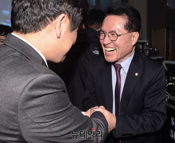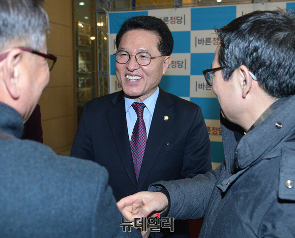 바른정당 정운천 전북도당위원장이17일 오후 전라북도 전주시 오펠리스 웨딩홀에서 '바른정당 전북도당 창당대회'에 참석해 지지자들과 악수를 나누고 있다.