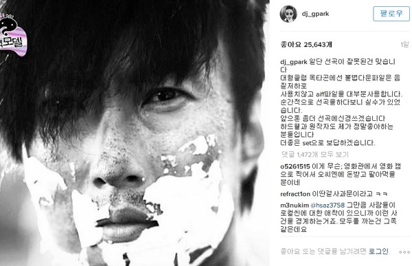 논란이 커지자 박명수는 17일 자신의 인스타그램에 "선곡이 잘못된 건 사실"이라며 자신의 잘못과 실수를 인정하는 사과문을 올렸다."일단 선곡이 잘못된건 맞습니다.
