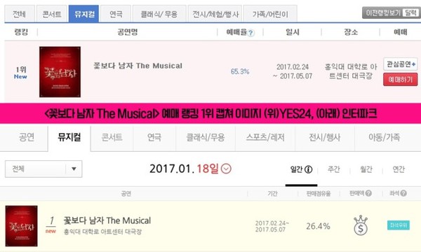 '꽃보다 남자 The Musical'이 예매 순위 정상에 올랐다.