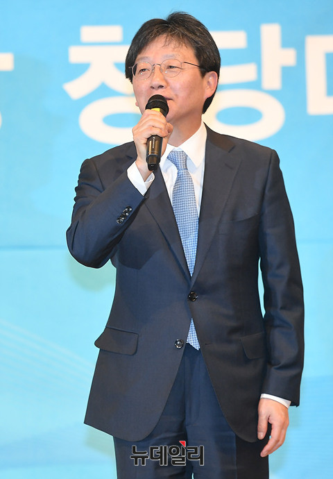 유승민 바른정당 의원이 18일 오후 부산 동구 부산국제여객터미널에서 열린 바른정당 부산광역시당 창당대회에서 발언하고 있다. 이날 창당대회에서 장제원 의원이 부산시당위원장으로 선출됐다.