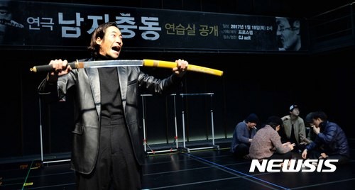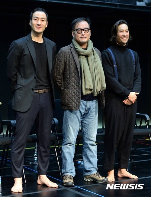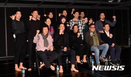 19일 오후 서울 종로구 대학로 CJ아지트에서 진행된 연극 '남자충동' 연습실 공개 현장에는 배우 류승범, 박해수, 손병호, 김뢰하, 황정민, 송상은, 전역산, 문장원, 박광선 등이 참석해 주요 장면을 시연했다.