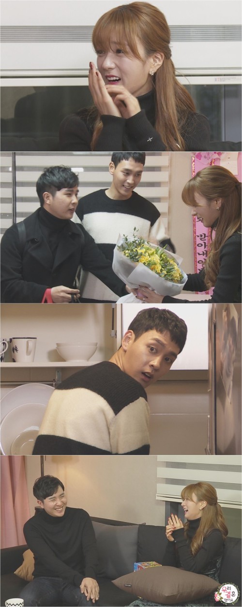'우결' 윤보미가 아주버님과 드디어 만났다.21일 방송될 MBC '우리 결혼했어요'(이하 '우결')에서는 윤보미가 남편 최태준의 친형과 처음 만나는 모습이 공개된다.이날 최태준의 형은 '태봄 커플' 최태준-윤보미의 러브하우스를 방문했다. 특히, 깜짝 선물과 함께 꽃다발까지 준비, 첫 대면에서부터 윤보미의 마음을 심쿵하게 만들었다.만남 초반 수줍어했던 윤보미는 이내 친화력을 발동시키며 "여자들에게 인기 많았죠?", "어렸을 때도 장난꾸러기였어요?", "남편이 제 얘기 한 적 없어요?"라며 아주버님에게 쉴새 없이 질문했다. 이에 최태준의 형은 질문 하나하나마다 정성을 담아 대답해 최태준을 더욱 긴장케 했다.최태준은 설거지를 하는 도중에도 친형의 폭로를 하나라도 놓칠까 귀를 쫑긋 세우며 경청해 웃음을 유발했다. 그는 두 사람의 대화에 웃었다 울었다를 반복하는가 하면, 순간 깜짝 놀라 반전 행동까지 보여준 것으로 알려져 더욱 궁금증을 자아낸다.토요 예능 '우리 결혼했어요'는 21일 오후 4시 55분 방송된다.['우리결혼했어요' 윤보미 최태준 친형 만남, 사진=MBC]