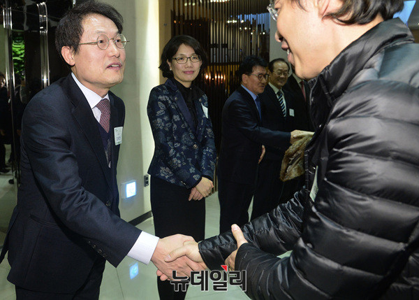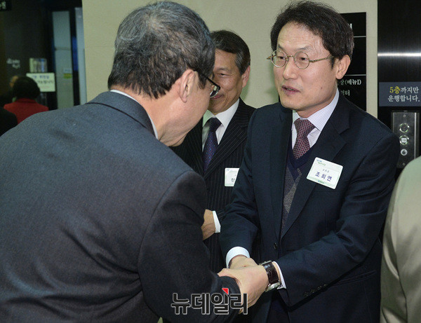 조희연 서울시교육감이 20일 오후 서울 성동구 디노체컨벤션에서 열린 '서울시교육청정책설명회 및 신년인사회'에 참석해 악수를 하고 있다.