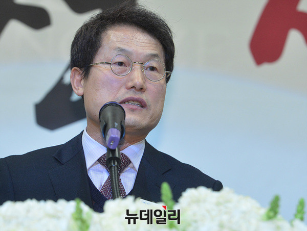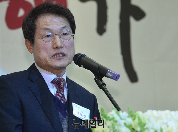 조희연 서울시교육감이 20일 오후 서울 성동구 디노체컨벤션에서 열린 '서울시교육청정책설명회 및 신년인사회'에 참석해 신년인사를 전하고 있다.