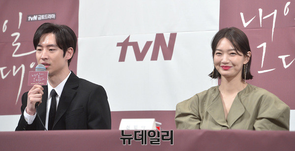 tvN 드라마 '내일그대와'의 이제훈, 신민아가 23일 오후 서울 강남구 임피리얼팰리스호텔에서 열린'내일그대와' 제작발표회에 참석해 포토타임을 갖고 있다.