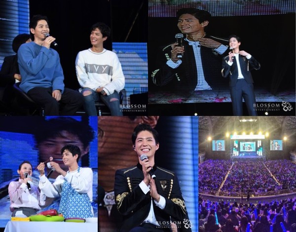 배우 박보검의 대만 팬미팅에 송중기가 깜짝 게스트로 출연했다.