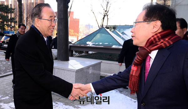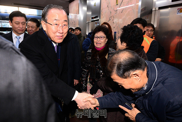 반기문 전 유엔사무총장이 24일 오전 서울 종로구 한국기독교총연합회를 예방해 지지자와 악수를 나누고 있다.