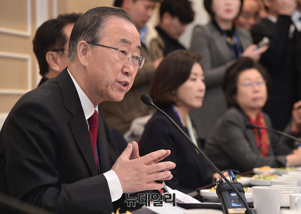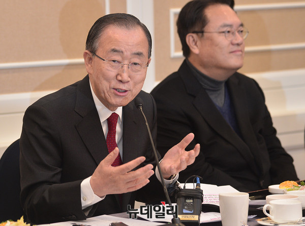 반기문 전 유엔사무총장이 25일 오전 국회 귀빈식당에서 열린 '왜 정치교체인가?' 조찬 간담회에 참석해 모두 발언하고 있다. 심재철 국회부의장의 주최로 열린 이날 간담회에는 반기문 전 유엔사무총장, 새누리당 정진석 전 원내대표, 나경원 의원 등이 참석했다.