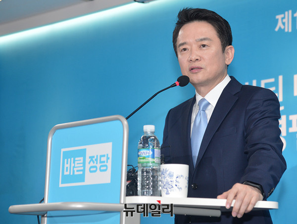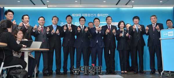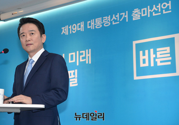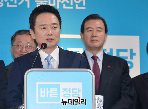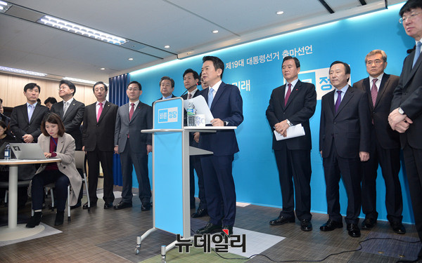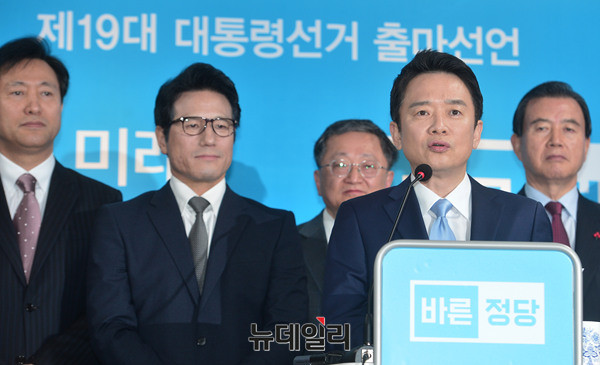 남경필 경기지사가 25일 오전 서울 여의도 바른정당 중앙당사에서 제19대 대통령 선거 출마를 선언하고 있다. 남 지사는 "일자리 넘치는 따뜻한 대한민국을 만들겠다"며 "성과를 낸 50대인 내가 해낼 것"이라고 자신감을 드러냈다.