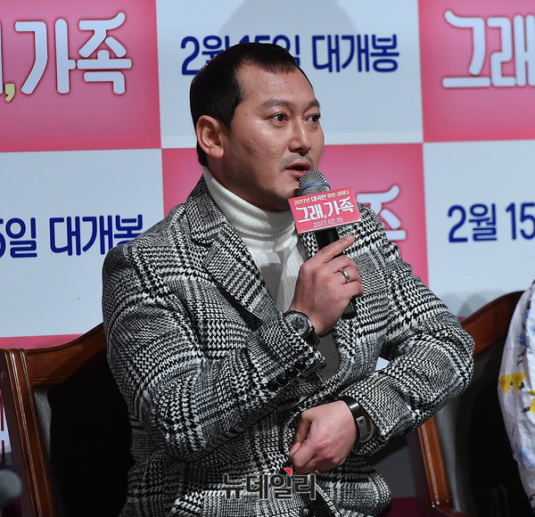 배우 정만석이 25일 오전 서울 강남구 압구정CGV에서 열린 영화 '그래, 가족(감독 마대윤)' 제작보고회에서 인사말을 하고 있다. 정만석은 철부지 첫째 성호 역을 맡았다. 영화 '그래, 가족'은 남 처럼 살아오던 삼 남매에게 막내 동생이 등장하면서 벌어지는 이야기를 담은 휴먼 코디디. 오는 2월 15일 개봉 예정이다.
