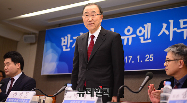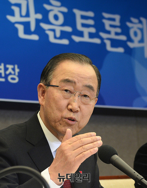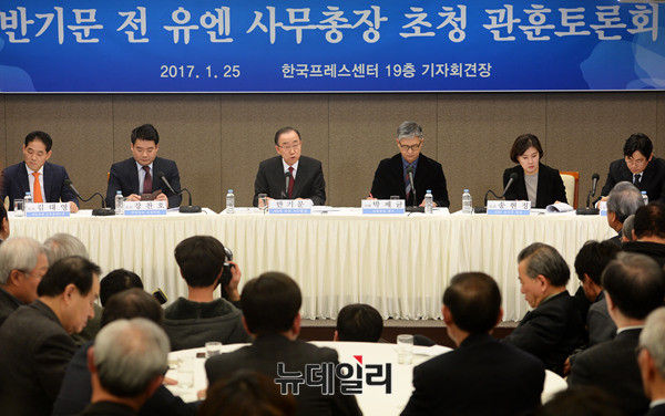 반기문 전 유엔사무총장이 25일 오후 한국프레스센터에서 열린 관훈토론회에 참석해 기조연설을 하고 있다. 이날 관훈토론회는 최근 큰 혼란에 빠진 우리나라를 어떻게 이끌어 나갈지에 대해 반 전 총장의 비전과 정치적 리더십 등 앞으로의 정치 행보를 알아보는 자리로 마련됐다. (사진=사진공동취재단)