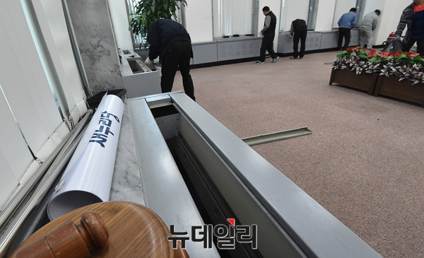 25일 오후 국회 새누리당 당 대표실이 바른정당 창당으로 공간을 비워줘야 해 다른 공간으로 이전하고 있다.