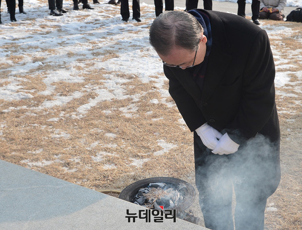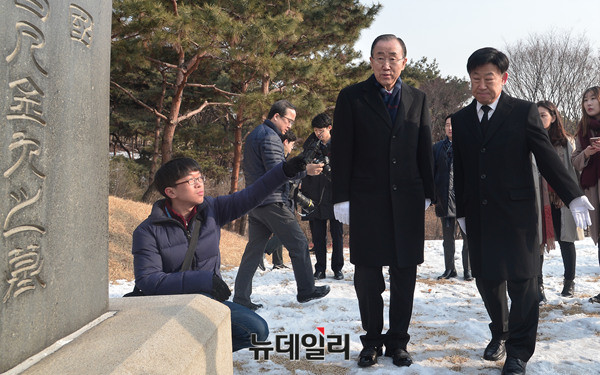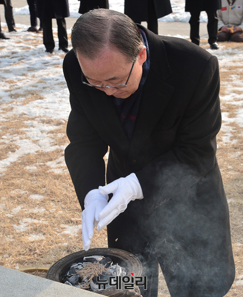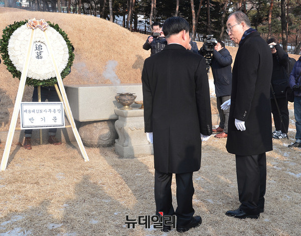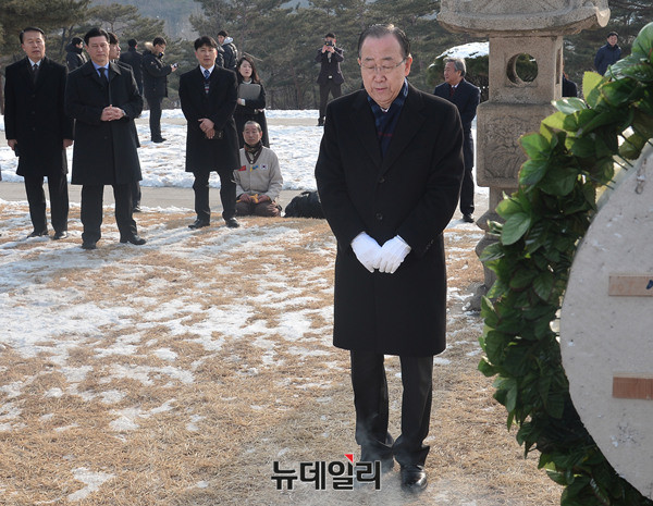 반기문 전 유엔사무총장이 26일 오전 서울 백범김구기념관을 찾아 김구 선생 묘역에 참배하고 있다.