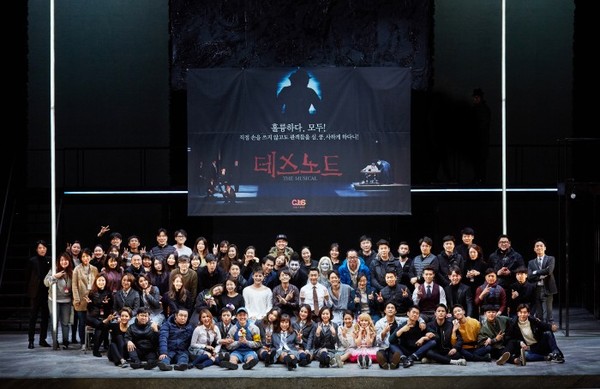 뮤지컬 '데스노트'가 뜨거웠던 3주간의 여정을 마무리했다.지난 26일 '데스노트'의 마지막 공연이 열린 예술의전당 오페라극장에서는 전 객석을 빈틈없이 가득 메운 관객들의 환호와 기립박수가 쏟아졌다.마지막 공연은 관객들의 요청으로 시야장애석까지 모두 오픈됐으며, 이는 판매와 동시에 전석 매진을 기록했다. 티켓을 구매하지 못한 관객들은 로비에 설치된 모니터를 통해 공연을 관람하고 함께 박수를 보내는 진풍경이 벌어지기 했다.지난 3일 개막한 뮤지컬 '데스노트'는 총 25회의 공연을 마치고 성황리에 막을 내렸다. 작품은 동명의 일본만화가 원작으로, 우연히 '데스노트'를 주워 악인들을 처단하는 천재 대학생 라이토와 이에 맞서는 명탐정 엘(L)의 두뇌 싸움을 그린다.2년 만에 돌아온 '데스노트'는 탄탄한 원작을 바탕으로 한 흥미진진한 스토리와 검증된 연출, 극 전체에 울려 퍼지는 아름다운 넘버들은 물론, 극을 이끌어가는 배우들의 열연으로 매회 최고의 무대를 완성했다.