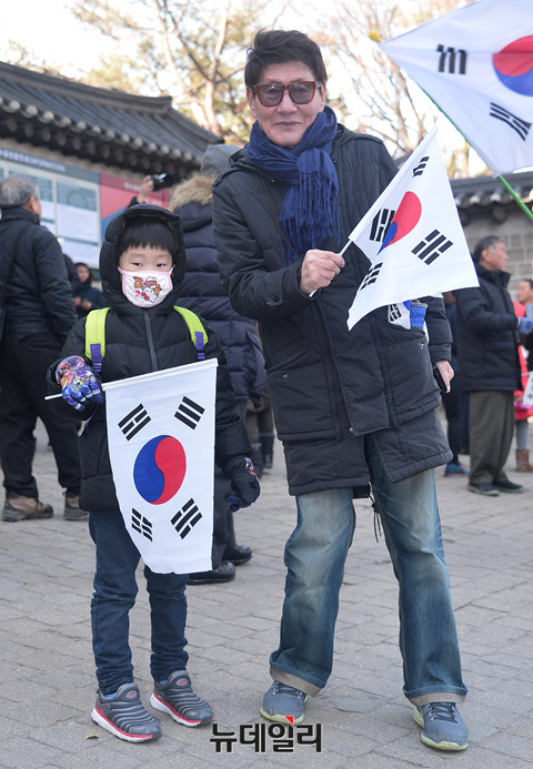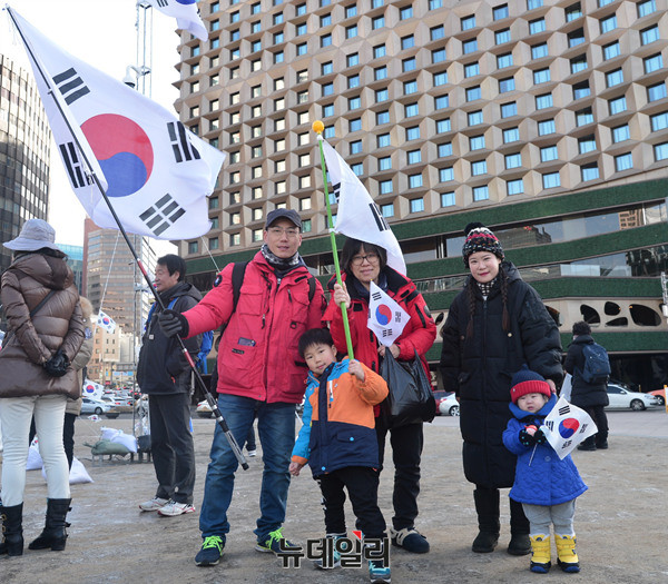 민족 최대의 명절인 설인 28일 오전 덕수궁 앞 대한문에서 열린 태극기집회에 참석하기 위해 가족단위의 시민들이 태극기를 들고 거리에 나섰다. 자유통일유권자본부를 비롯한 애국단체가 주최한 이날 집회는 추최 측 추산 1만 여명의 시민들이 참석했다.