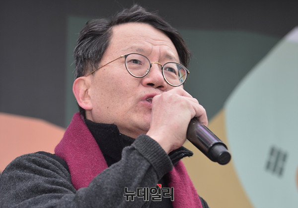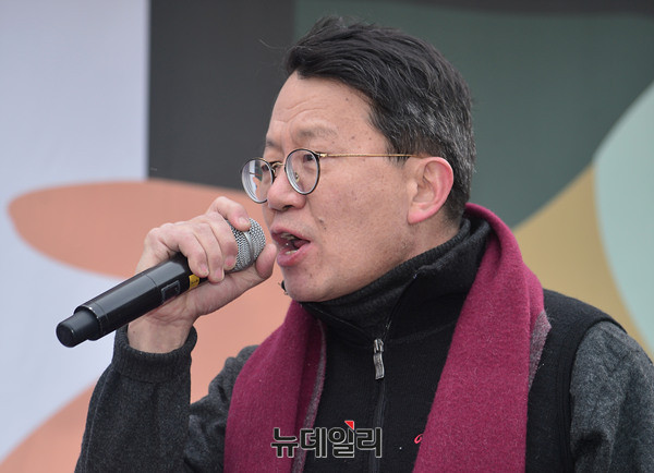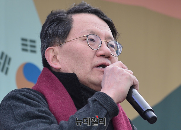 박성현 자유통일유권자본부 집행위원장이 28일 오후 덕수궁 앞 대한문에서 개최된 태극기 집회에 참석해 발언하고 있다. 박 위원장은 "박근혜 대통령은 통진당, 전교조를 해산 시키고, 민노총을 무력화하고, 개성공단을 철수하고, 사드배치 결정과 한미동맹을 강화했다"며 "이 모든 것이 북한의 마지막 숨통을 압박해 자유통일로 향하는 문을 열어준 일관된 정책이었다"면서 "그런데 저들은 그게 죄라며, 박근혜 대통령을 끌어내자고 폭도판을 벌였다"고 말했다.