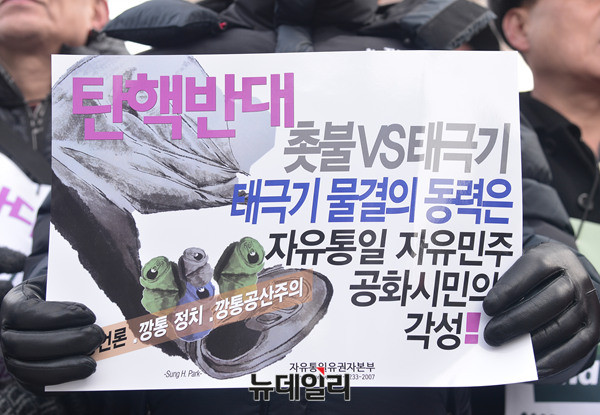 이어 "그게 죄라면 나도 죄인이 되고 싶다. 모든 분들이 마찬가지일 것이다. 우리 모두 죄인이 되고 싶은 게 맞죠"라고 반문했다. 그러면서 "박근혜 대통령이 임기를 채우고 자유통일 정책을 이어갈 수 있도록 탄핵 기각에 힘쓰자"고 했다.