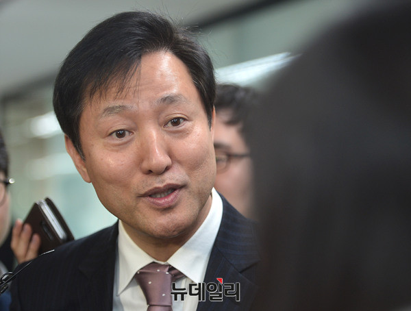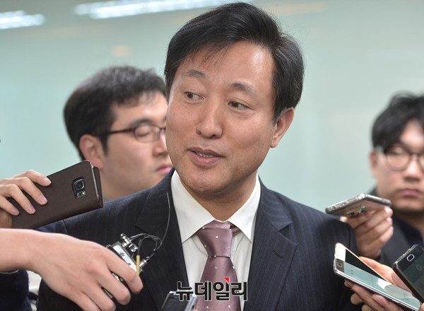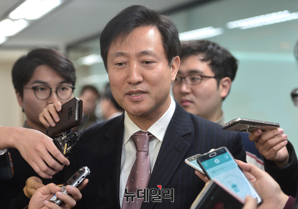 오세훈 바른정당 최고위원이 31일 오전 서울 여의도 바른정당 중앙당사에서 열린 최고위원회의를 마치고 질문에 답하고 있다. 이날 최고위원회의는 일부 비공개로 진행됐다.