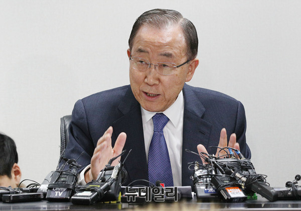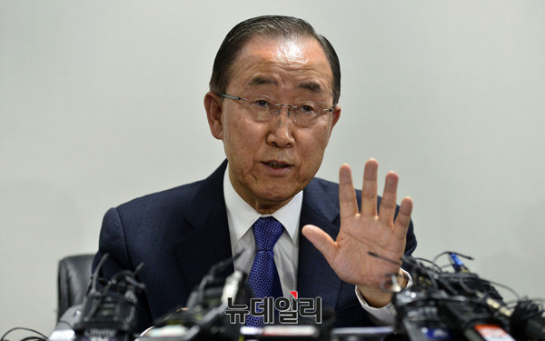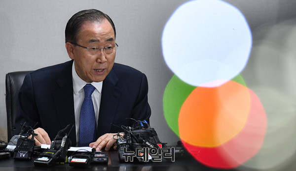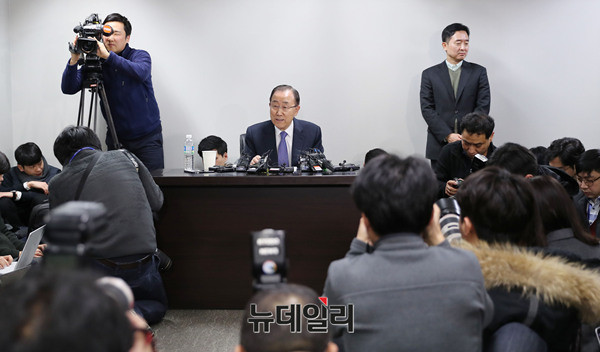 반기문 전 유엔사무총장이 31일 서울 마포 트라팰리스에서 기자회견을 갖고, 대선 전 헌법 개정을 실현하기 위해 '개헌협의체'를 구성할 것을 여야에 제안했다. (사진=사진공동취재단)