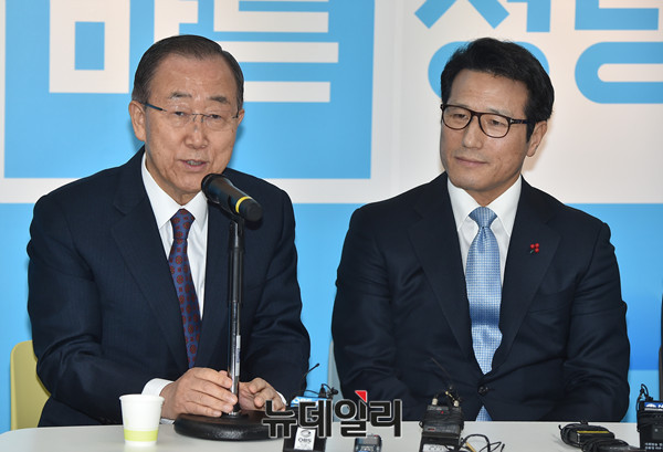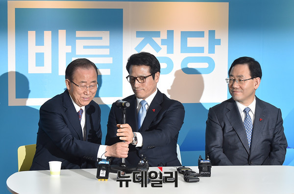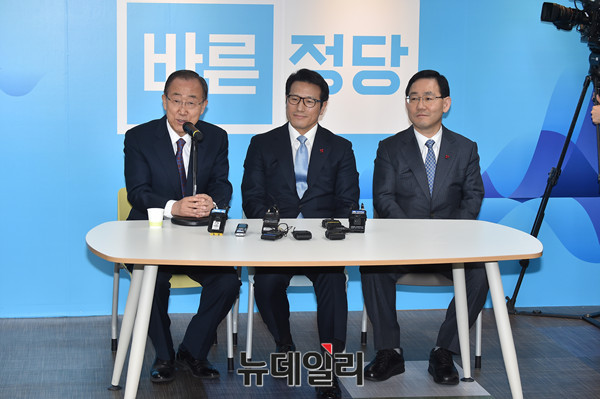 반기문 전 유엔 사무총장이 1일 오전 서울 여의도 바른정당 당사를 방문해 정병국 대표, 주호영 원내대표 등 지도부와 차담회를 갖도 있다.