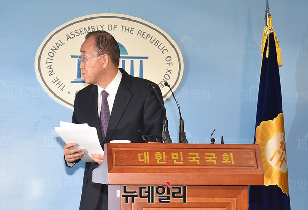 반기문 전 유엔 사무총장이 1일 오후 국회 정론관에서 기자회견을 갖고 대선 불출마 선언을한 후 회견장을 떠나고 있다.