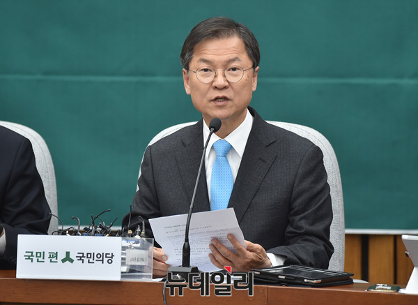 천정배 국민의당 전 상임 공동대표가 3일 오후 국회에서 열린 의원총회에 참석해 모두발언 하고 있다.