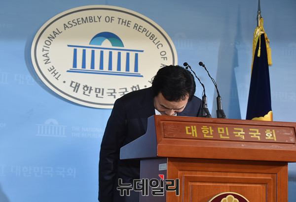 손학규 국민주권개혁회의 의장이 7일 오전 국회 정론관에서 기자회견을 갖고 국민의당과 공식 통합을 선언하고 회견장을 떠나고 있다.