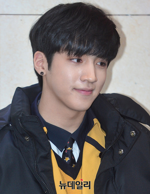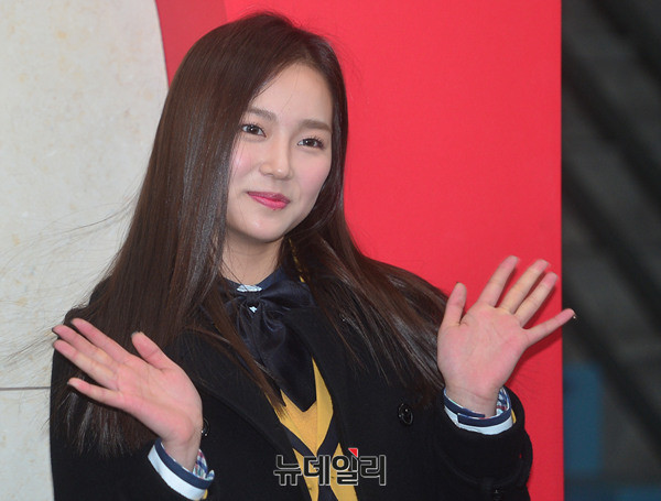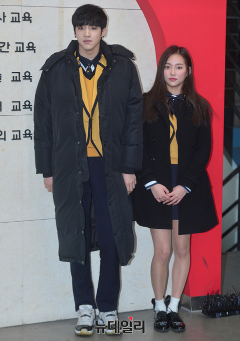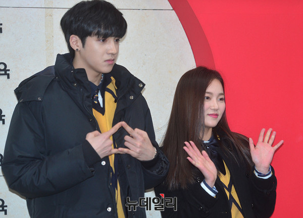 그룹 펜타곤 우석과 씨엘씨 장예은이 7일 오전 서울 구로구 서울공연예술고등학교에서 열린 졸업식에 참석해 포토타임을 갖고 있다.