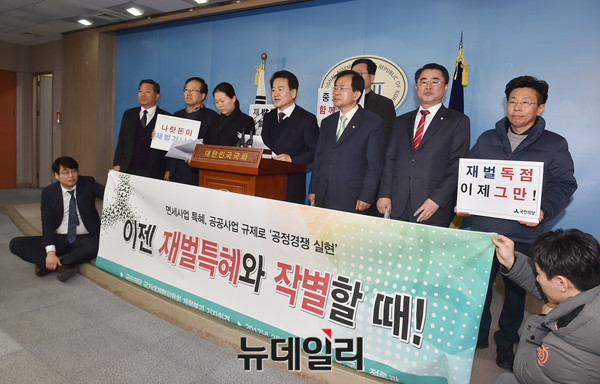 정동영 국민의당 의원이 9일 오전 국회 정론관에서 국가대개혁위원회 소속 위원들과 기자회견을 하고 있다.