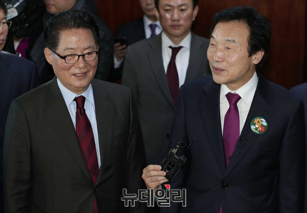 박지원 국민의당 대표가 10일 오전 국회에서 열린 최고위원회의에서 통합선언 뒤 처음 당을 찾은 손학규 국민주권개혁회의 의장과 회동 후 기자들의 질문에 답하고 있다.
